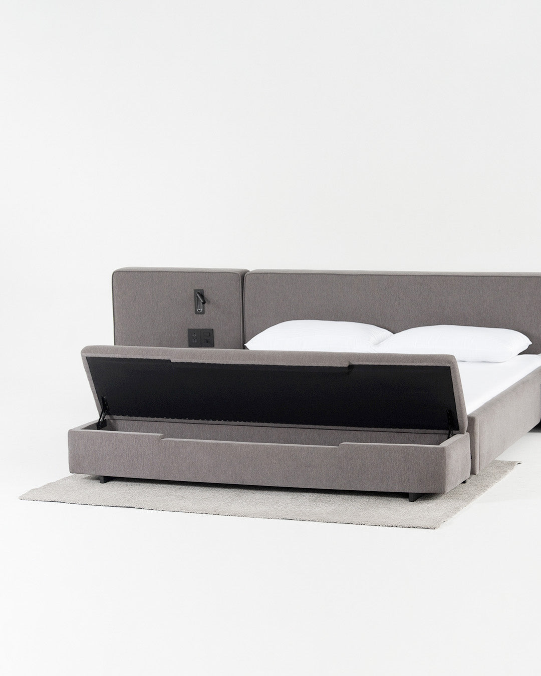 Width: 228 cm / Height of bed: 38 cm -Headboard: 93 cm / Depth: 258 cm